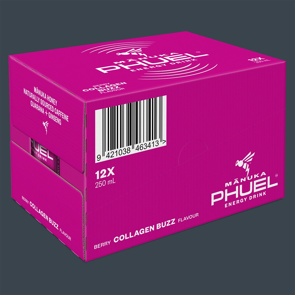 Phuel the Mind, with the energy drink that is changing the game. Manuka Phuel delivers everything you expect from an energy drink: bold taste, powerful kick, and peak performance—with added marine collagen to support skin, hair, and joint health. Crafted entirely from natural ingredients. Packed with max caffeine, Guarana, and Ginseng, and sweetened with New Zealand’s secret superpower, Manuka honey, it’s the energy drink reimagined. With NO Synthetic Ingredients & NO Synthetic After Taste.